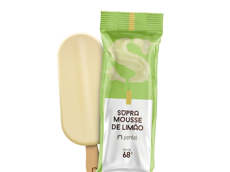 Sorvete no palito de mousse de limão com cobertura de chocolate branco.