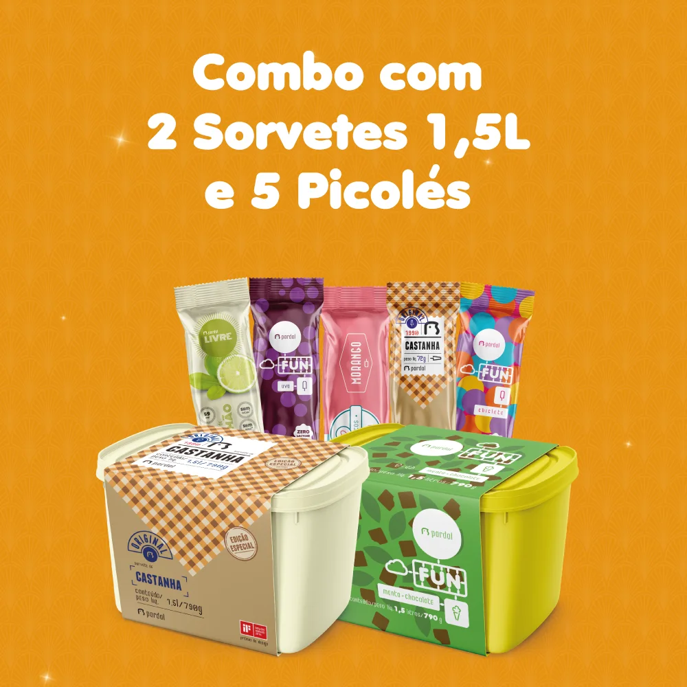 Combo: 2 sorvetes de 1,5L + 5 picolés